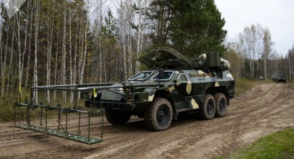 资料图片:俄军装备的“叶子”遥控扫雷车。(俄国防部官网)