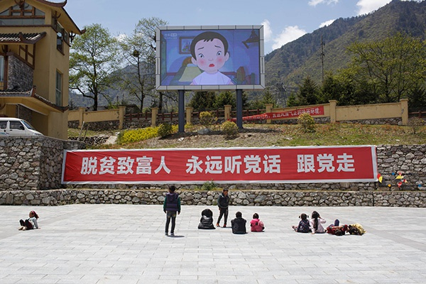 2017年5月初,川滇交界处的贫困山村,并不是每个孩子都能用上手机,户外的大屏幕是他