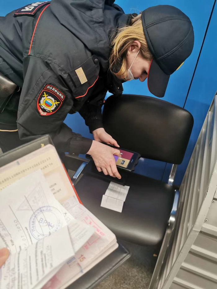 3月1日,林川在罗蒙诺索夫大街地铁站遇到警察查证件,他被要求出示护照(首页、签证页)、入境卡、入境登记/落地签以及医院证明供警察拍照。警察还需拍下他的正面照,并登记手机号码。同时,警察帮他填写了一份包含国籍、入境日期等信息的中俄双语表格,由他签字,表格名称为《莫斯科公共交通使用者的申请表》。