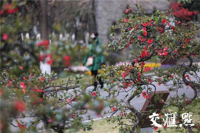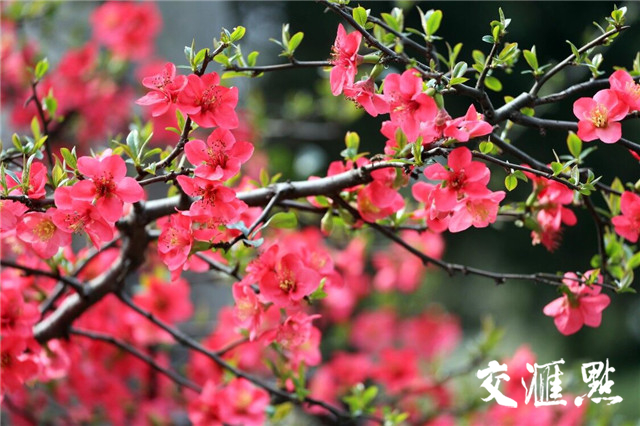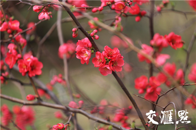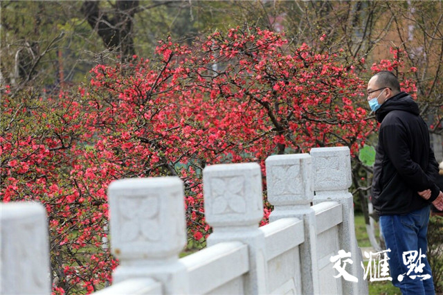 交汇点讯3月4日,南京天气晴好,莫愁湖公园海棠精品园内的木瓜海棠类早花品种盛开,一片片红色的花海,美不胜收,不时有市民驻足欣赏、拍照。交汇点记者宋宁摄