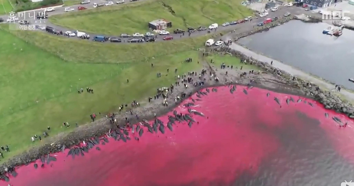 丹麦当地仍保留着捕杀鲸鱼的传统 视频截图