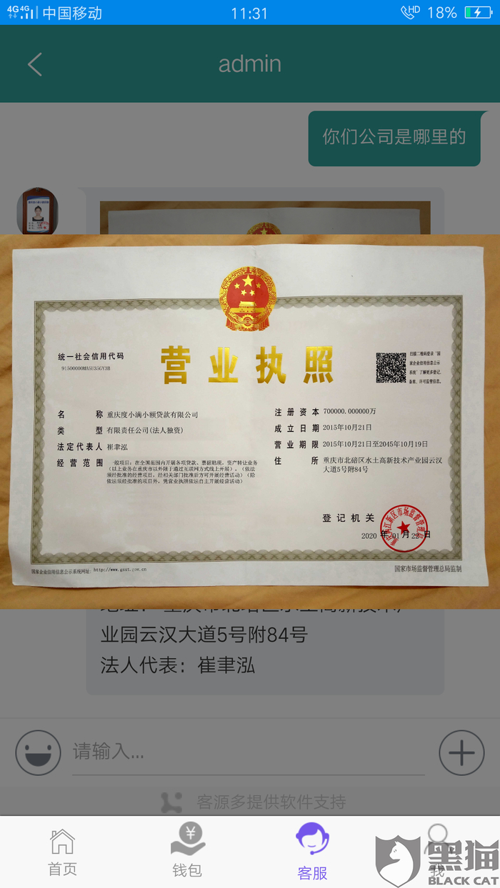 消费者“用户7404294897”在3月6日向黑猫投诉平台再次反映:“虚假,那怎么有度小满的营业执照呢?肯定有问题,”