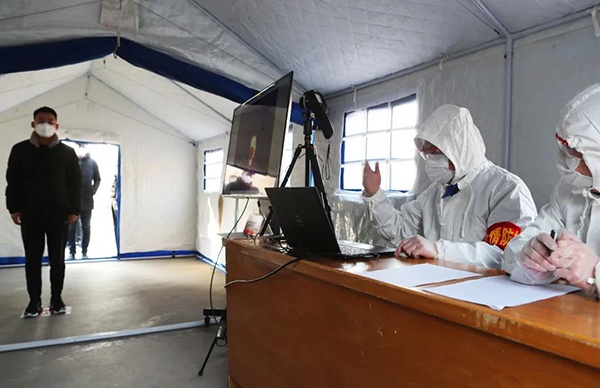 乘客接受体温测量和登记