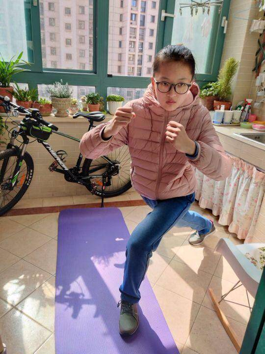 “孩子们在家练得特别认真,有的学生还主动提高难度,比如有的学生额外增加了健腹轮的练习,这个对肩部、上肢和腰背的力量要求很大;有的同学做俯卧撑使用了俯卧撑辅助器,放在腰部垫高了身体,对上肢的力量要求更高;有的同学在做交叉跳动作的时候,手上还拿了哑铃增加了负重练习;有的同学每次发照片的时候还配一句励志的话:改变从每一天开始,点滴汗水里流淌的是信念,智慧和理想等。”同学们的认真练习让王璐非常感动。
