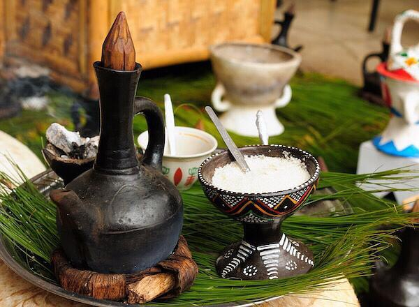 放在陶壶里的咖啡,“咖啡仪式”中的一步