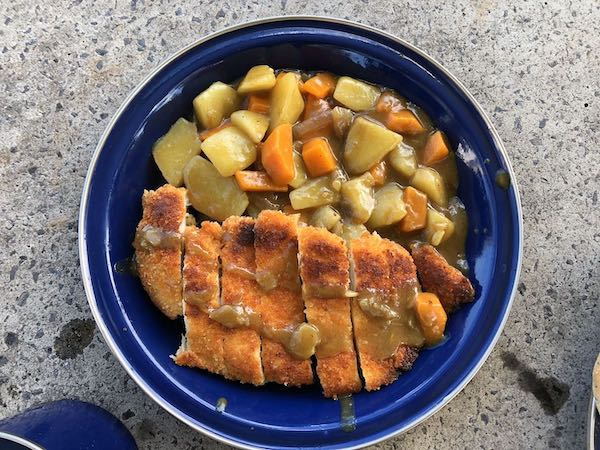 日本背包客利用烤炉做的煎鸡排咖喱