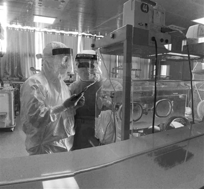程红斌主任介绍说,隔离病房的宝宝从出生起至少要接受三次核酸检测,一次是刚出生时,一次是出生4天时,第三次是出生7天时,同时还要接受血清lgM和IgG检查。穿着防护服、戴着三层医用防护手套,为新生宝宝穿刺的难度可想而知。为了缩短暖箱开箱时间,减少宝宝被感染的风险,穿刺那刻,郭宏卿屏住了呼吸。