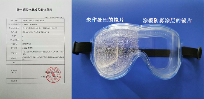 针对新冠肺炎一线医务人员长期佩戴护目镜、防护面具和使用密封检测设备的严重起雾,影响医务人员精确治疗的紧急问题,四川大学生物材料工程研究中心与企业紧急攻关,成功研制了安全舒适,长期佩戴不起雾,观察清晰的防雾护目镜及面罩,已申请专利2项,并于3月3日获得成都市市场监督管理局医疗器械审批(川蓉械备:20200063号),目前已将首批医用隔离眼罩提供华西医院使用,并扩大生产,以广泛提供医务人员使用。