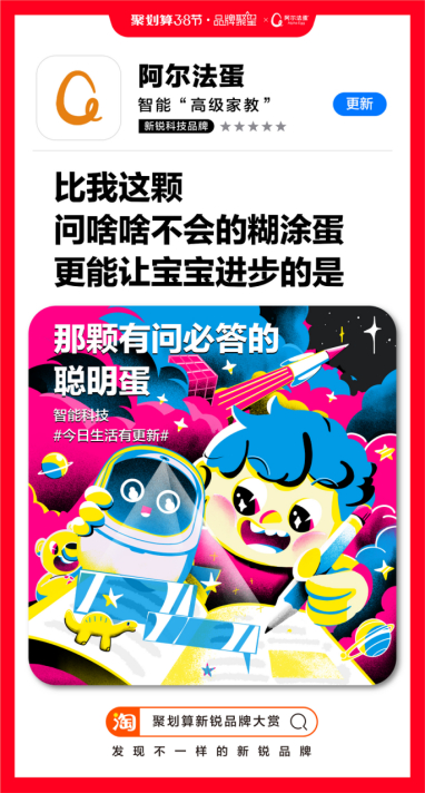2017年,阿尔法蛋进驻聚划算。在进入聚划算后,通过与聚划算的沟通,聚划算将阿尔法蛋划分到了“智能机器人”的子类目中,后续聚划算还给予阿尔法蛋分享了销售的数据,共同从产品外观、价格、渠道上进行探索,取得了显著的效果。2017年-2019年,连续3年时间,阿尔法蛋稳坐聚划算智能机器人品类销售额第一名,更是在2019年双11中创造单日产品销量突破3万台的记录,逆势同比增长百分之二百以上。