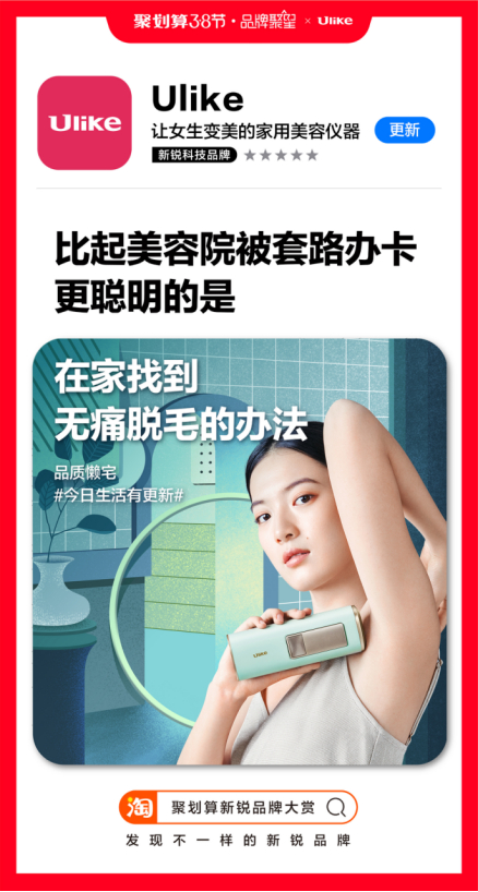 此次三八聚星活动也是针对新锐品牌的一次有力的营销和推广方案。消费者通过在聚划算上搜索“聚划算新锐品牌大赏”关键词,就能够进入主会场中,不同的楼层中展示了不同细分场景的需求,例如“女神必买”、“生活新格调”、“乐活爱运动”等,持续帮助品牌在品牌层出不穷的时代获得关注度和声量。