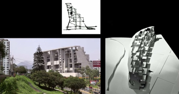 这个利马工程技术大学(University Campus UTEC Lima)竞赛有不少注意点,其一是大西洋的草图,40米高的悬崖峭壁是城市与海洋的边界,建筑场地在山谷之中,360米长的回旋镖形的场地北部是繁忙的高速公路,南侧是广袤的田野和城市景观,我们在悬崖底部设置了大实验室、礼堂、影剧院等公共大空间,而新校园的小实验室、图书馆和小教室则作为面向城市的层叠的“瀑布”。我联想到南美建筑师做的奇特结构,例如Dorado足球体育馆中足球赛是在观众视线以外发生的,所以显然体育是这座建筑的重点,但我们认为真正有趣的是结构中的地下室部分能激发的社交可能性。