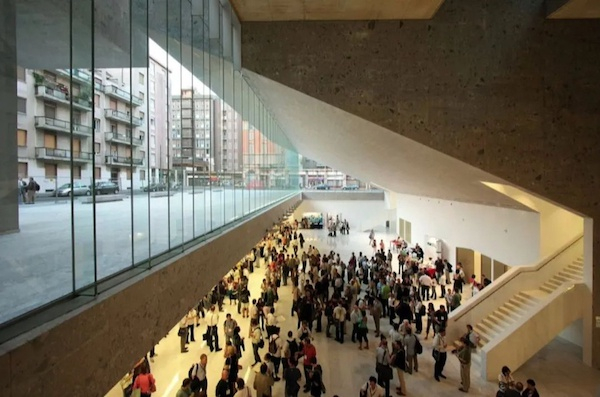 照片中是建筑的中庭,也是整个大学的中心。它确实变成了一个焦点,也促进了与城市的联系。