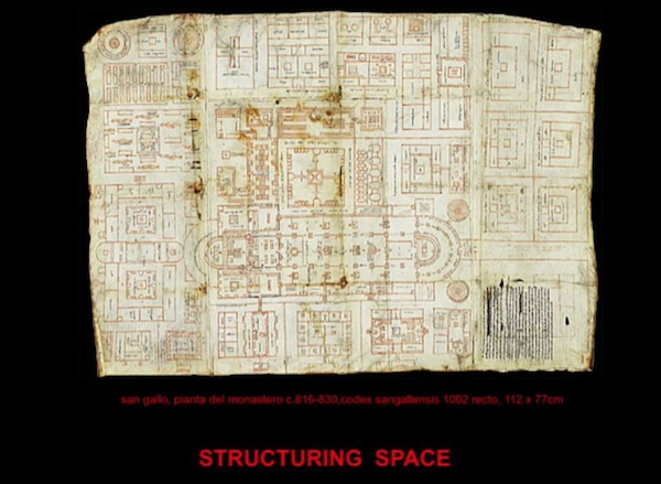 这是一张公元九世纪纪录Bendictine修道院排布的地图,我们喜欢的不只是这个地图的绘画,更喜欢它记录的内容。我设想这里大约有300个居民,包括僧侣,动物,医院和教学空间,而且它是一个丰富的多功能空间。而我们感觉当下社会越来越分化,我们仿佛被强行安排到各种专业而且不从别的热忱专业人士和他们所热爱的事业中收获和学习。我们从城市主义者和撰写和谈论城市的人们那里学到了很多。在亚厉杭德罗·阿拉维纳写的一本书中,他描述了城市并且讨论了城市正面领前所未有整合连结不同阶层背景的需求——一种可以使我们社会更丰富的需求。因此,这代表了一种功能和居民的丰富的混合。
