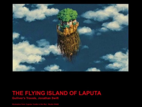 我不知道你们是否都读过《格列佛游记》,但很棒的一点是,斯威夫特在发挥着想象力。斯威夫特想象着一个漂浮的世界,它依靠磁力漂浮着,居民们非常清楚如何操纵磁悬浮。那里有一个充满水的山洞,居民对占星术感兴趣。