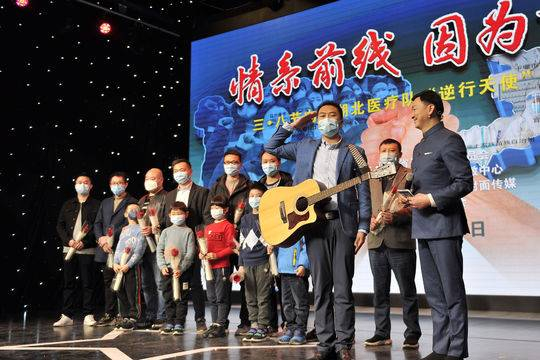 活动现场,部分家属代表与湖北抗疫前线的亲人现场连线,送上节日的祝福和慰问,他们还一起为前方的巾帼英雄献上歌曲《为了谁》。