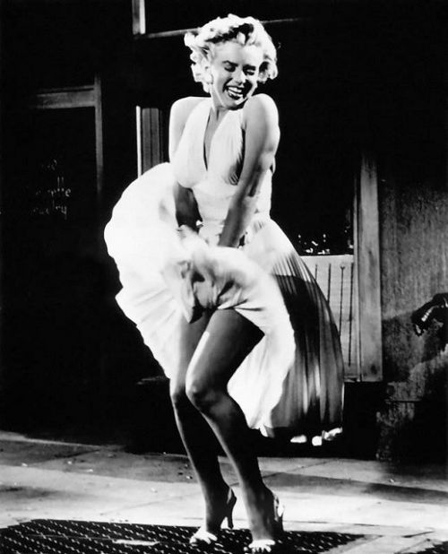 梦露最经典的造型,应该是电影《七年之痒》里,那张在地铁口被风吹起来的裙摆。