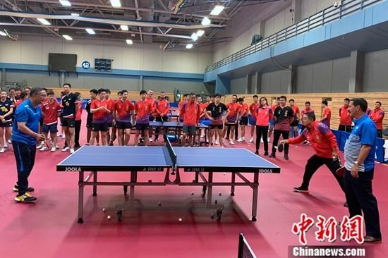 资料图:中国乒乓球协会主席刘国梁率首位“超级全满贯”男子选手马龙等中国乒乓球运动员及教练于8月初赴加州大学洛杉矶分校,同美国国家乒乓球队进行为期20天的共同训练。中新社记者 张朔 摄