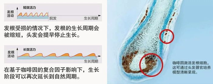 咖啡因防脱生发,在头上短短停留几分钟,就能被发根吸收,并作用于发根。