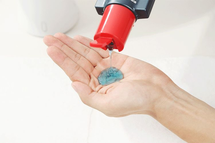 这瓶洗发水,挤出来是淡蓝色的液体状,闻起来有一股淡淡的香味。