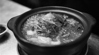 南京满大街的鸭血粉丝汤,“南京大牌档”是这样做的:用老鸭熬制吊出清汤作底,端上来鲜味扑鼻,抿一口味道浓郁。同时创新使用砂锅烹煮,在口感中增添了几分锅气的香味。鸭血、鸭肠、鸭肝、豆腐果、鸭肫……“老朋友们”一个都不少。