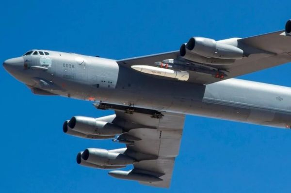 资料图片:美空军B-52H轰炸机挂载AGM-183高超音速导弹试飞。(美空军官网)