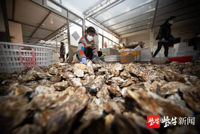 新鲜的生蚝正在进行分拣。