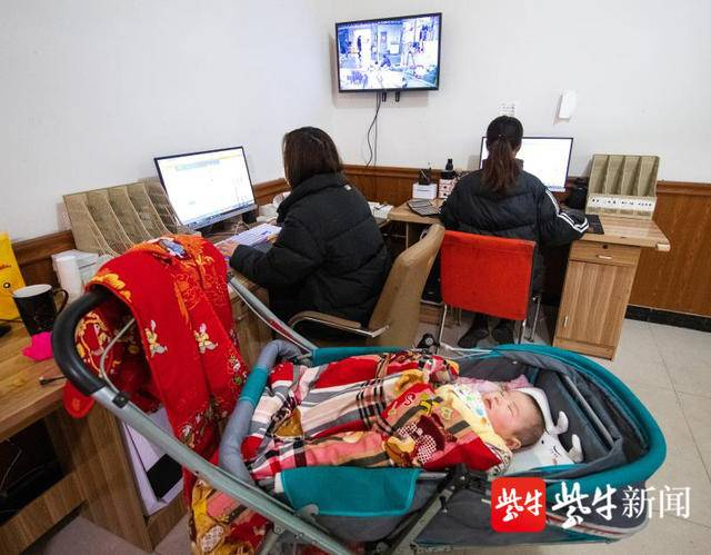 在海头镇大兴庄村王金磊家里,记者看到几名工人正在院子里忙着打包。房间内的客厅通过简单改造,成了客服人员的办公室,3名客服人员坐在电脑旁,在忙着接单下单。一位客服人员身旁的婴儿车里一个酣睡的婴儿,她叫王雯雯,是王金磊的妹妹,熟睡的婴儿,则是她六个月大的女儿。“孩子的奶奶去她姑姑家了,所以我就带着来上班了。还好女儿比较乖,平时也不哭闹。我和老公跟着哥哥做电商快2年了,老公正在院子里打包,两个人一个月收入大概一万多块。”