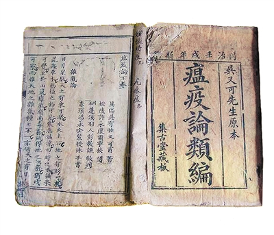 明末清初,南北直隶、山东、浙江等地暴发鼠疫传染病,死亡者不计其数,尸骨遍野,惨不忍睹。据《明季北略》记载:“夏秋之交,疫疬大作,万民凋瘵,兼之凶荒相继,殡殓为艰,枯骸暴露,尸横郊野……一巷百余家,无一家仅免,一门数十口,无一仅存者”。当时的郎中们用伤寒法治疗瘟疫,但毫无效果。吴中名医吴又可经历了几次疫情,积累了丰富的经验,他摒弃了伤寒论的治疗方法,推究病源,潜心研究,依据治疗经验所得,撰写成了全新的《温疫论类编》一书,开我国传染病学研究之先河。书中,吴又可总结毕生的治疫经验和体会,大胆提出“疠气”致病之学说。他把自己的一个发现昭告于众:瘟疫是一种新型的病种,它与伤寒有着天壤之别。该观点新颖独到,在世界传染病学史上也是一个伟大的论断。