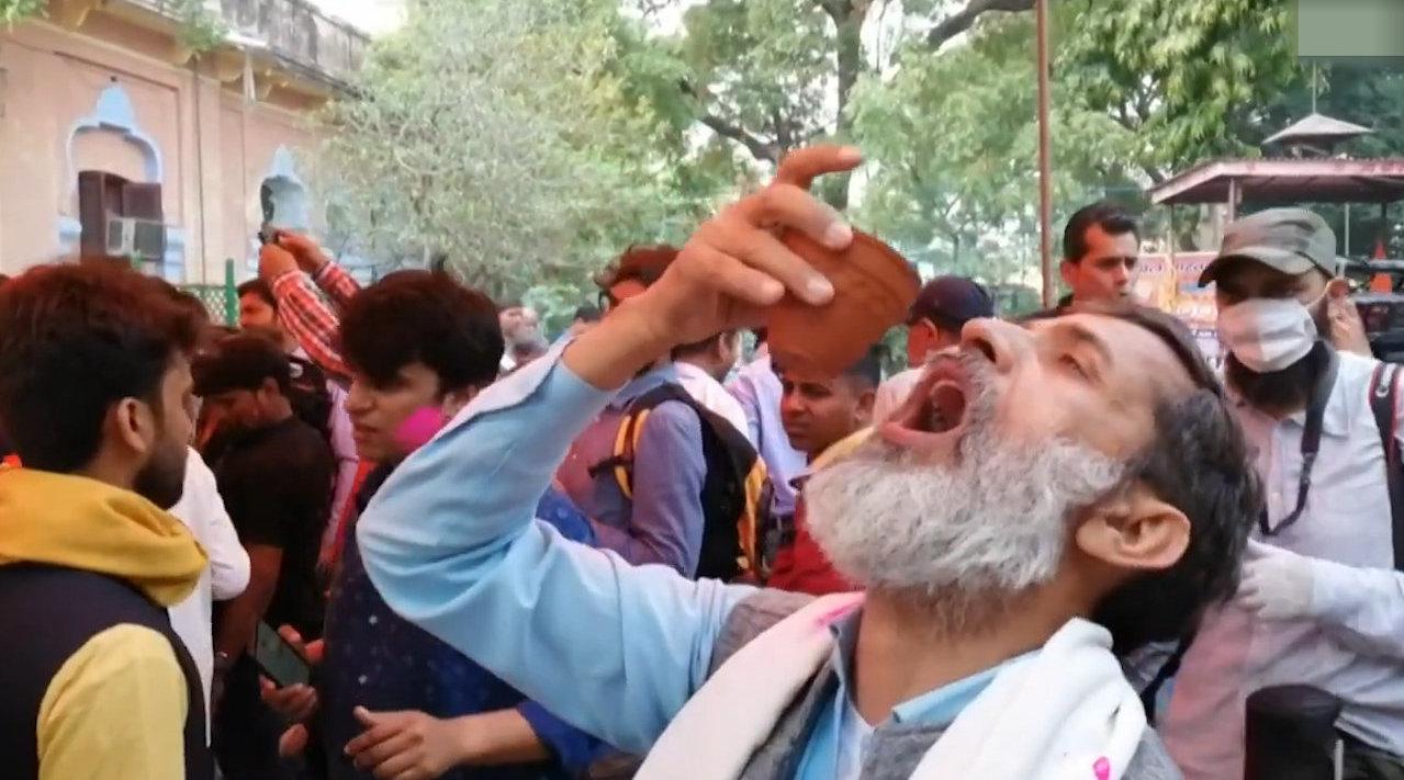 视频-印度约200民众聚众喝牛尿 称可抵抗新冠状病毒