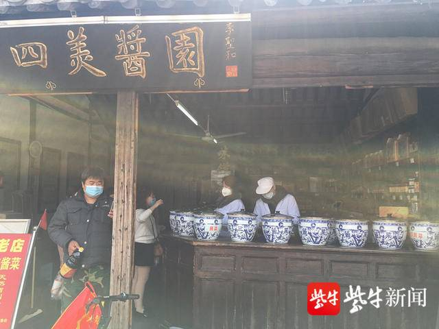 一位在百年老字号“四美酱园”买咸菜的阿姨告诉记者,自己是徐州人,女儿嫁在扬州。家里的咸菜吃完了,趁着今天复街第一天,赶紧过来买,“扬州酱菜味道好,比我们老家的好吃。东关街封闭了这么长时间终于又开放了,逛街的感觉真好!”