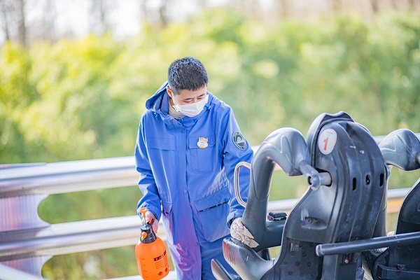 在游客普遍关注的园区消毒方面,上海欢乐谷表示所有员工必须佩戴齐全的防护工具,测温上岗。对游乐设施、公用设施、游客中心电子触摸屏等游客接触的设备表面做到“一客一消毒”。除了每日的园区消杀之外,开放的商店每日至少2次消毒通风,洗手间每隔2小时消毒一次;游客中心、公共洗手间都备有消毒洗手液、一次性纸巾等用品,并增设废弃口罩专用箱,尽最大努力让游客玩得放心、玩得开心。