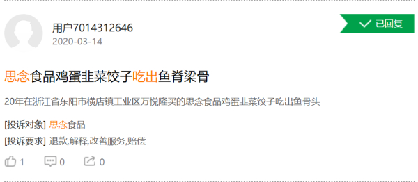 记者也针对上述问题联系了相关厂家进行了咨询,记者拨通思念食品的客服电话,客服人员对于记者询问的速冻水饺中为何出现异物没有直接给出答案,在记录记者的联系方式后表示会安排专门的业务人员与记者联系,解答相关问题。但截至作者发稿,思念食品尚未有工作人员与记者取得联系。