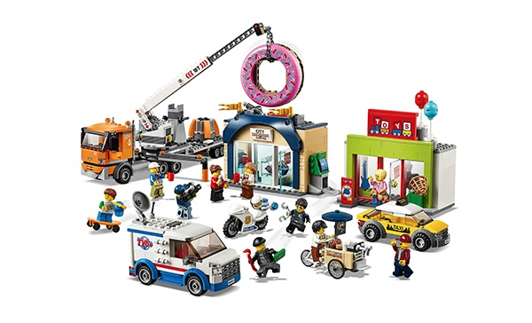 套装的主题上,也可以看到一种更日常且柔和的处理。在之前的City系列中,警察抓犯人、消防员救火以及驾驶卡车挖掘机成为长期霸占City系列的几大主题,但“甜甜圈店开业”的设计则比较巧妙,从盒子上看,它聚焦在甜甜圈商店开业的那一刻——