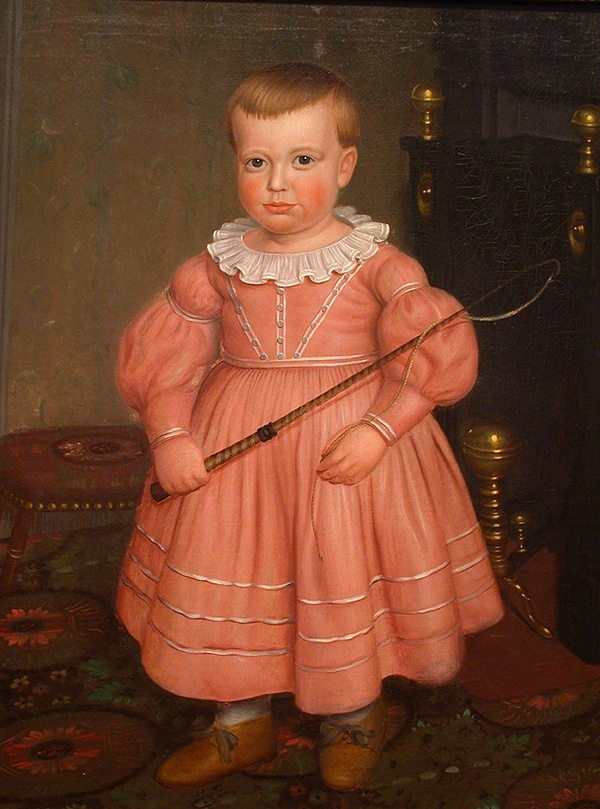 19世纪40年代美国的一幅肖像画上,一位小男孩穿着粉色的服装。