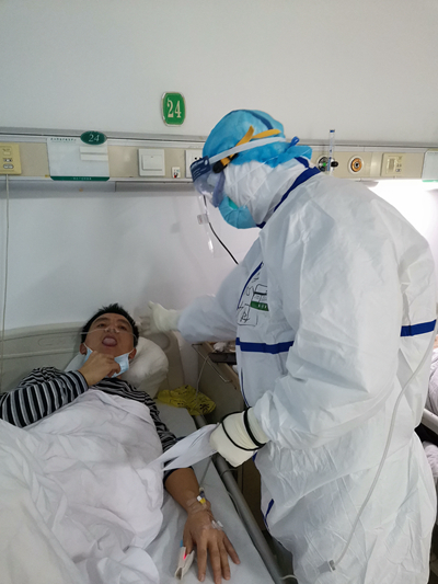 另有一位83岁的老婆婆,入院时病情危重,无法脱氧,动则气促,一般营养状况差。李浩团队采取了丙种球蛋白联合参麦注射液和血必净静脉输注的治疗方法。“我们的护理人员每天帮助她进食、更换纸尿裤,定期为她擦洗。通过医护配合,最终婆婆康复出院。不仅婆婆自己非常庆幸、非常满意,同病房其他病友看到她奇迹般地恢复都为我们点赞,也增强了他们自己治愈出院的信心。”李浩说。