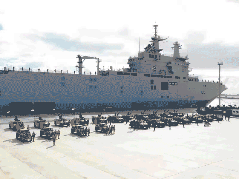埃及于2015年,在沙特提供经济援助下,花费10亿欧元从法国采购了2艘西北风级两栖攻击舰(每艘满载排水量2.1万吨,可搭载900名步兵及配套武器装备),“纳赛尔”号(舷号L1010,如图)和“萨达特”号(舷号L1020)相继于2016年列装埃及海军。列装两舰后,使得埃及海军成为了北非地区两栖登陆能力最强的海上力量。