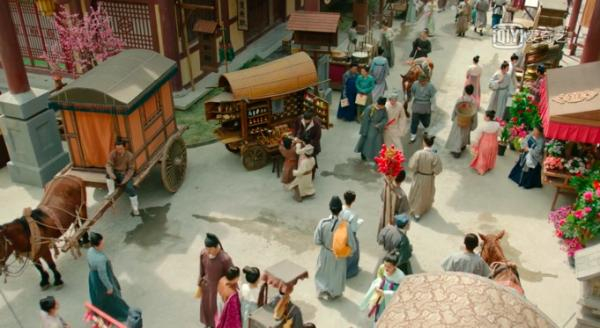 虽处唐朝末期,但可从剧中看到街景繁荣,有小人戏看,有小生意做,无心的线人尚青天随便自制药丸也能卖到被围住。