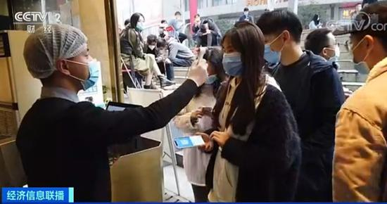 虽然火锅店恢复了堂食,但跟以往相比也有区别。3月11日,观音桥商圈所在的江北区根据疫情防控要求,客人到店后,首先要在门口进行体温测量和酒精消毒,然后进行登记并出示“渝康码”,最后由工作人员引导进入相应区域就餐。