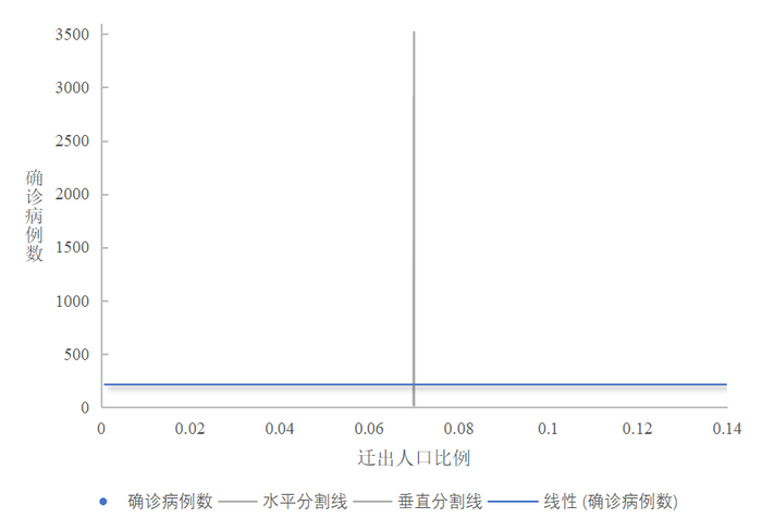 图(见图2)可知,迁出人口比例与确诊病例数呈现明显的正相关关系。因此,