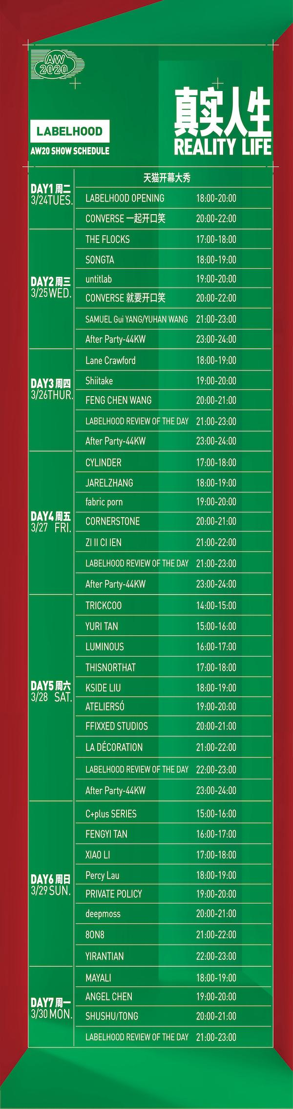 时装周旗下的中国设计师孵化平台LABELHOOD蕾虎先锋时装艺术节此次召集比往季更加多元化的设计师阵容。超过31个设计师品牌,以“真实人生”为主题一同上云,呈现创意之余不忘探讨时装文化的态度。这些设计师品牌分别为(按首字母排序)ANGEL CHEN、ATELIERSÓ、C+plus SERIES、CONERSTONE、 CYLINDER、deepmoss、FENGYI TAN、Feng Chen Wang、fabric porn、FFIXXED STUDIOS、JARELZHANG、KSIDE LIU、LA DÉCORATION、LUMINOUS、MAYALI、PRIVATE POLICY、Percy Lau、Shiitake、SONGTA、SHUSHU/TONG、TRICKCOO、THISNORTHAT、THE FLOCKS、untitlab、XIAO LI、YIRANTIAN、YURI TAN、ZI II CI IEN 、8ON8。其中,SAMUEL GUÌ YANG与入围今年LVMH Prize的Yuhan Wang虽不会以直播形式发布2020秋冬系列,但是大众依然可以通过线上视频感受其最新系列的魅力。