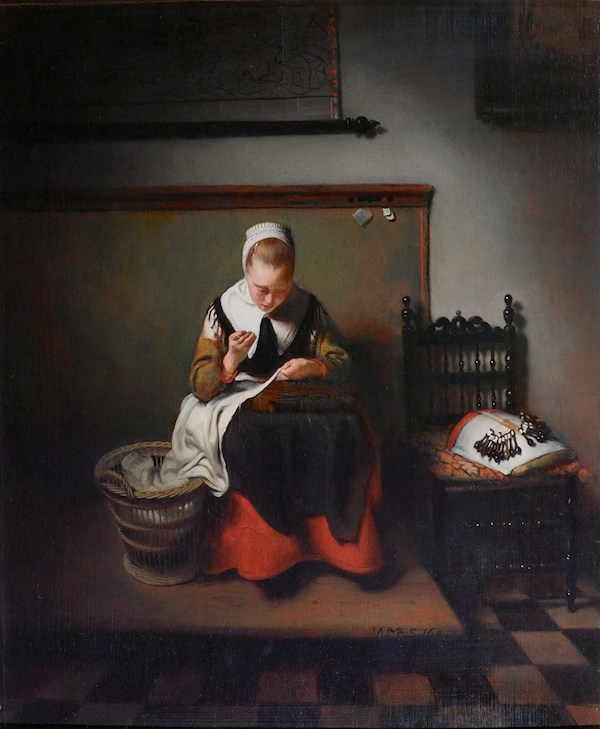 尼古拉斯·梅斯, 《正在缝纫的年轻女子(Young Woman Sewing)》, 1655年