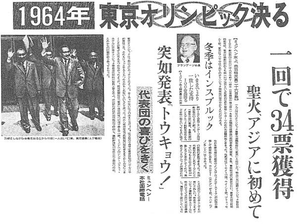 1964年东京奥运会申办成功当天的《读卖新闻》