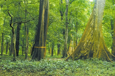 柚木是极为珍贵的用材,我国从东南亚国家引种柚木已有200年历史。印度尼伦布尔地区有世界上最早的柚木人工林。 王西洋供图