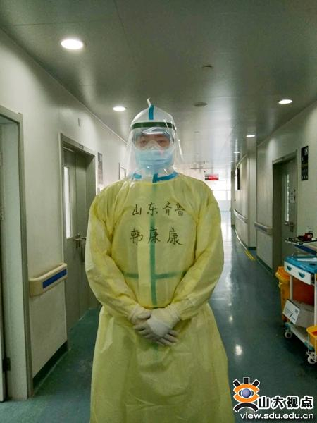 在临床工作中,齐鲁医院第四批援湖北医疗队员、全科医学科主治医师发现病区内的患者普遍高龄,除患有新冠肺炎外常常合并多种慢性病和基础疾病,他充分发挥齐鲁医院全科医学的诊疗思维,不漏掉任何一个细节。在给患者治疗身体疾病的同时,他重视患者心理变化,及时给予心理疏导与安慰。每次穿着厚厚的防护服在病房内的诊疗过程都是对体力和心理的考验,当转身出门听到:“谢谢你们山东人!谢谢!”时,韩康康顿时觉得一切的努力、付出都是值得的。看到一批批患者出院时脸上洋溢着久违的笑容,他深深的为身着这身白衣而自豪,并表示:“我一定会以入党为新起点,充分发挥党员先锋模范作用,坚决做到不怕苦、不怕难、不怕累,为打赢疫情防控阻击战贡献力量。”