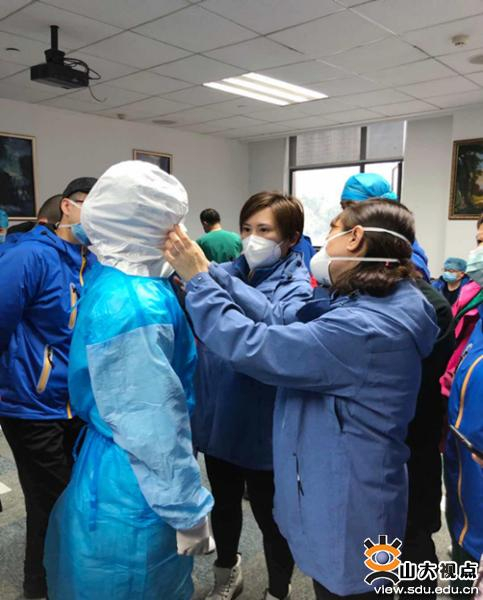 齐鲁医院第四批援湖北医疗队员、普外科5D病区护士长赵燕,担任医疗队驻武汉大学人民医院东院区第十七病区副护士长。她的主要工作是协助护士长管理病区护理工作的质量。为了让不同科室组成的医疗队员尽快适应工作,赵燕快速制定了各班次工作职责和工作流程,整理污染区抢救车,建立清洁区急救站,优化“三区两通道”布局。她每日进入隔离区督导检查护理工作质量,排查隐患,完善工作细节,严格检查每一位出入污染区医务人员的防护措施是否到位。她总是冲在感染风险最高、队友最需要的地方,虽然工作很苦很累,但她认为:“这是组织考验我的机会,让我明白了共产党员越是重要关头、越见精神品质,越是关键时刻、越显担当作为,我将用实际行动在这场疫情阻击战中接受党组织对自己的考验。”
