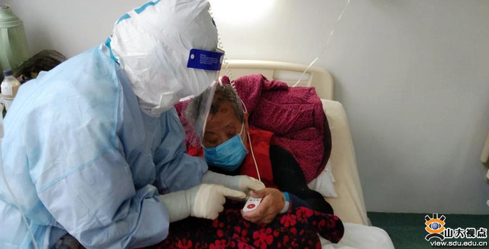 在接管病房之初,齐鲁医院第四批援湖北医疗队员、心外监护室的护师王云,迅速克服内心对病毒的恐惧心理,成为医疗队内第一批进入隔离病房的护士。病区内,一位94岁的高龄患者刘奶奶,由于病情重,情绪多有反复,王云便时刻关注她的情况,上班时增加巡查次数,在老人闹情绪时及时连线家属共同安慰,陪她说话、陪她玩、给她弄好吃的,功夫不负有心人,老人的病情慢慢好转可以出院了,出院时老人握着王云的手说:“能够治愈出院,非常开心,感谢你们山东的护士姑娘,感谢所有医护人员对我的精心治疗。”此外,作为护理小组长的王云不仅要关注病人的情况,还要关注着组员们的工作状况和身体状态,对于体质差些的队员,她还会尽量多的去帮大家承担工作。