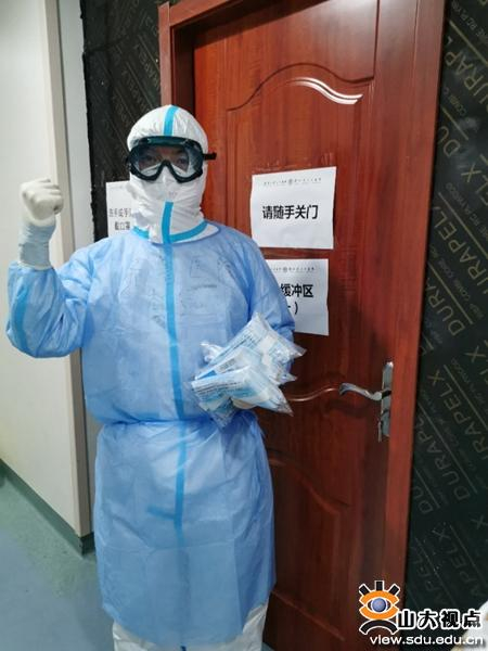 在湖北一线,齐鲁医院第四批援湖北医疗队员、感染性疾病科的护师王宁的主要工作是负责病区内的感染控制,制定感控及穿脱防护服的流程,时刻提醒同事要时刻保持高度警惕。无论医生护士,只要是需要进入感染病房的,王宁都要仔细“审查”一遍,看看大家的防护服穿得是否严密,以防止感染,成为阻挡病毒传播的“门神”。她还受邀去给贵州医疗队员进行入科前的培训。由于防护服外没有口袋,她和同事拿来了针线,给大家制成了一个个随身携带的布兜,用来放常用的笔、胶布和预冲等物品,提高了大家的工作效率。谈到此次“火线入党”,王宁坦言是身边的无数党员医护工作者毫不犹豫、奋不顾身地投入到一线工作中感染了自己。她表示:“我将努力工作,继续接受党组织的考验。”