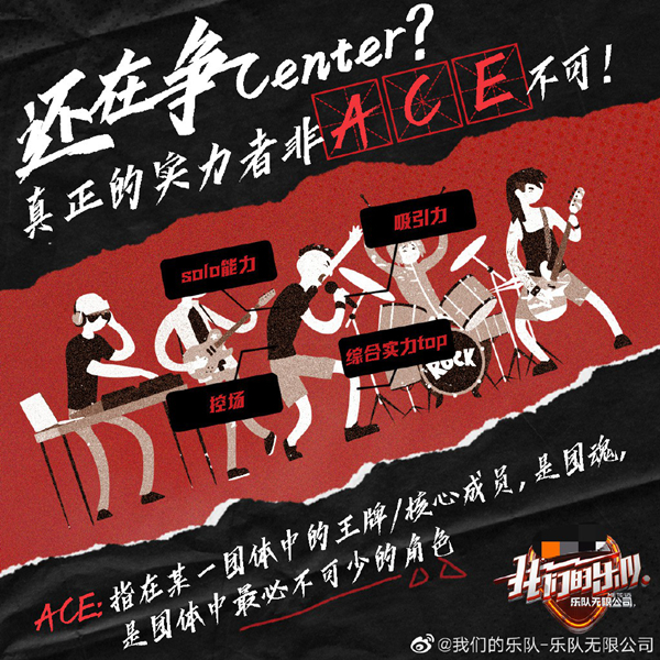 从某个角度上看,《我们的乐队》是以选拔男团/女团的方式在组合一个乐队。所谓的Ace,就像是获得A评级的队长,每次公演结束后,有的人会从A位置滑落,有的会获得A的评级。差别在于,男团/女团选秀是以个人的方式获得评分,依照排名顺序自动成团;乐队多了一个领队与乐手相互选择过程,以团体的形式PK,最终获胜的乐队就全员出道。二者殊途同归,都会诞生一支团队,比如从《青春有你》中走出了UNINE,从《一起乐队吧》走出了旅行新蜜蜂乐队(虽然没几个人知道)。