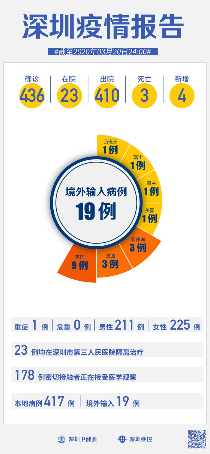 3月20日,深圳确诊4例境外输入新冠肺炎病例,累计达19例。