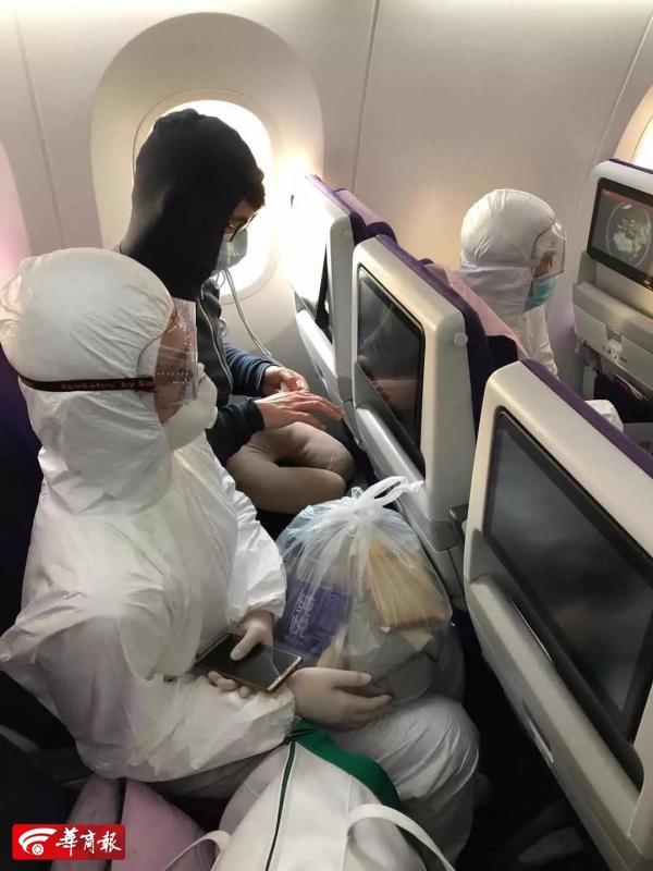 在飞机起飞前,空乘人员出示二维码让所有乘客填写健康状况和旅行、居住史。整个航程十分安静,所有人都戴上了口罩。整整九个小时里,闫肃只喝了两次水,也用最快的速度更换了一次口罩,把废弃的口罩放进事先准备的带封条口的保鲜袋中,航程期间空乘人员对所有乘客进行了一次体温测量。